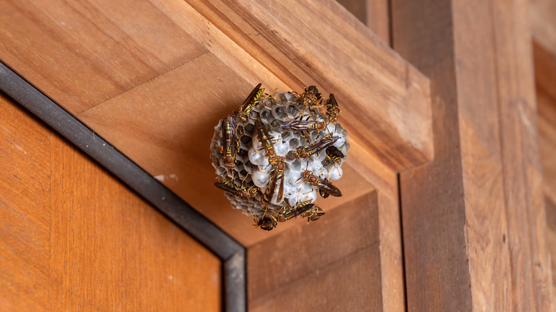 Paper wasp nests are typically situated above ground on both natural and manmade structures like shrubs and trees or attic rafters and roof overhangs. Remember, paper wasps are docile when left alone. If you spot a paper wasp nest on your property, we recommend leaving it be and calling in the experts!