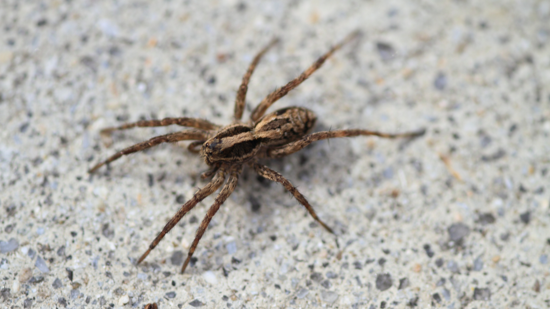 Wolf Spiders: Ground-dwelling, active hunters that do not build webs. Often found in basements, garages, or on the floor. Their size and sudden movement can startle people, even though they’re generally harmless.